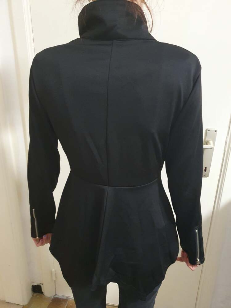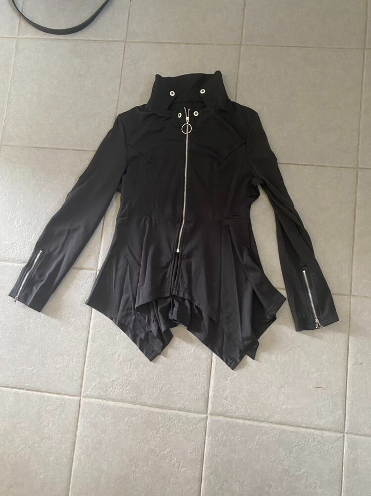 Rehaussez votre garde-robe gothique avec cette veste asymétrique noire dotée d'une fermeture éclair sur le devant et d'un ourlet haut-bas . Parfait pour les amateurs de mode alternative à la recherche d'une touche de style. 🖤