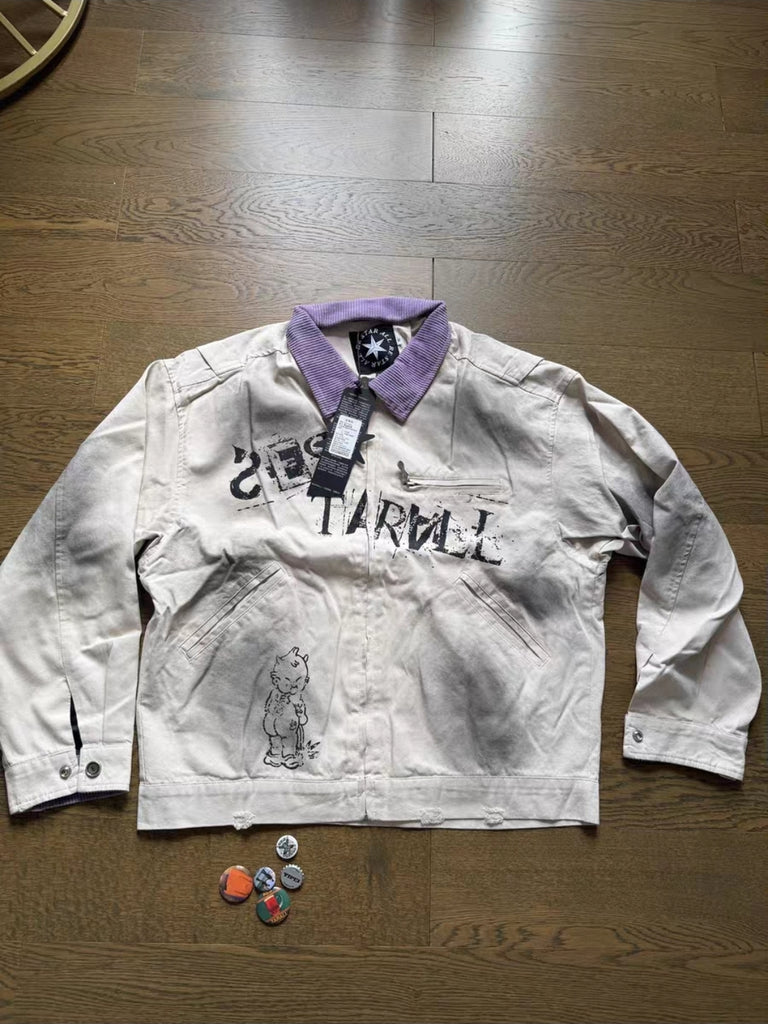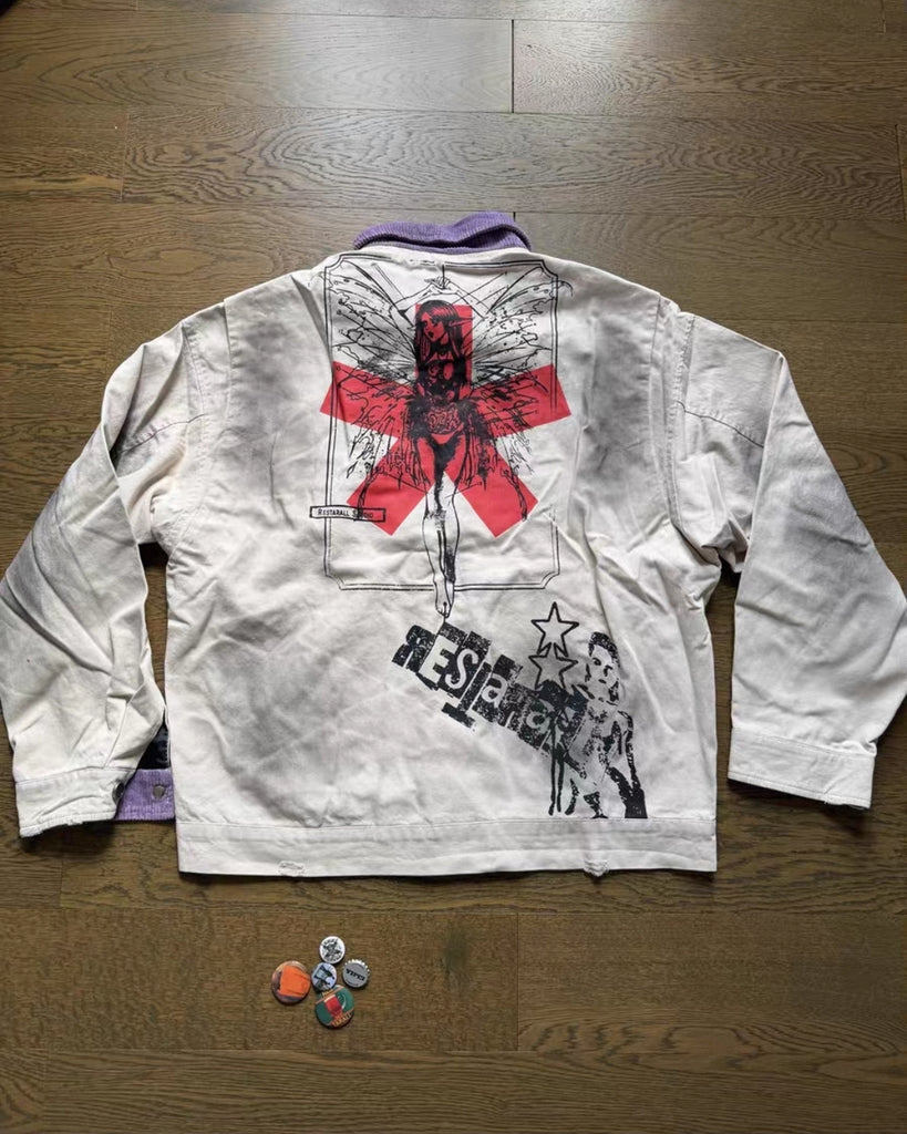 Affirmez votre style urbain avec cette veste délavée audacieuse, ornée d'un authentique effet usé et d'un badge rétro affirmé sur le revers. Conçue pour hommes et femmes, sa coupe boyfriend oversize offre un look décontracté et tendance grâce à son aspect volontairement vieilli. Inspirée de Detroit, cette veste allie le charme vintage à l'esprit streetwear contemporain, créant ainsi une pièce polyvalente idéale pour sublimer vos tenues casual. Parfaite pour celles et ceux qui apprécient un style brut et authentique, plein de caractère et d'attitude.