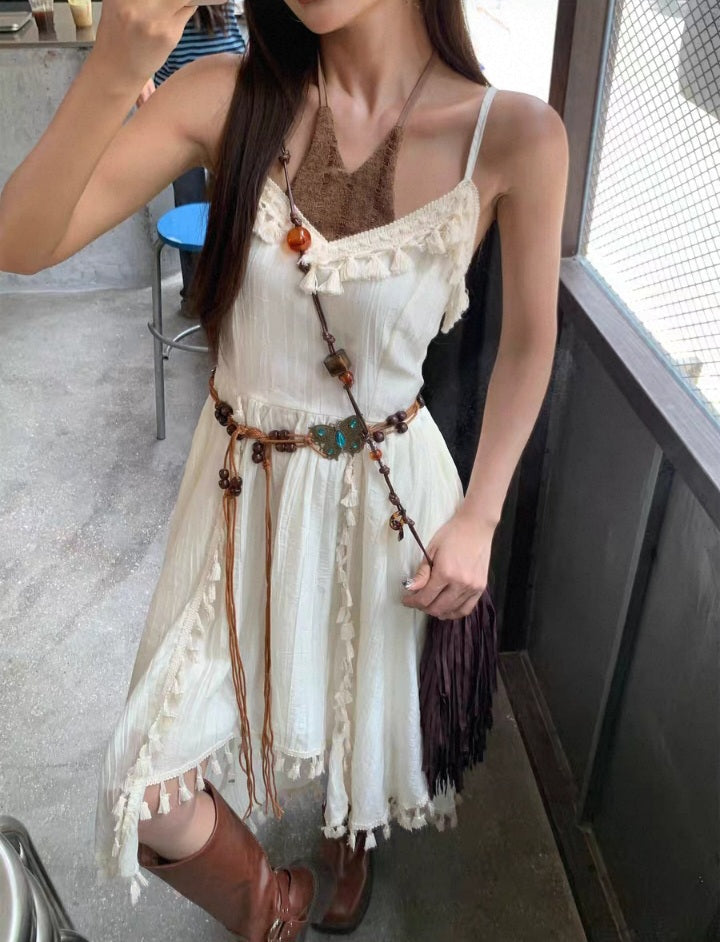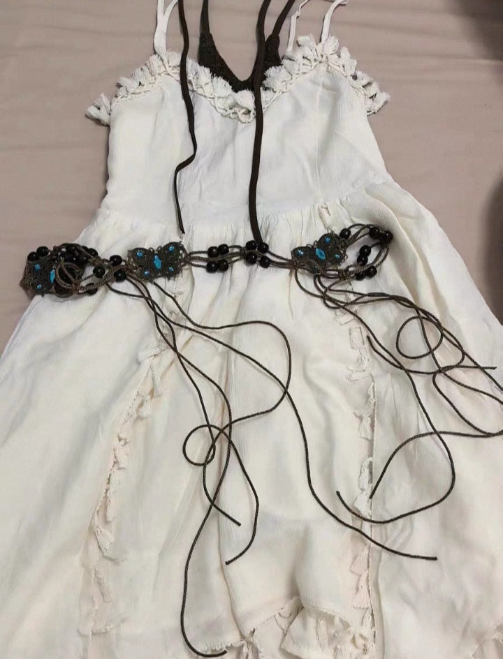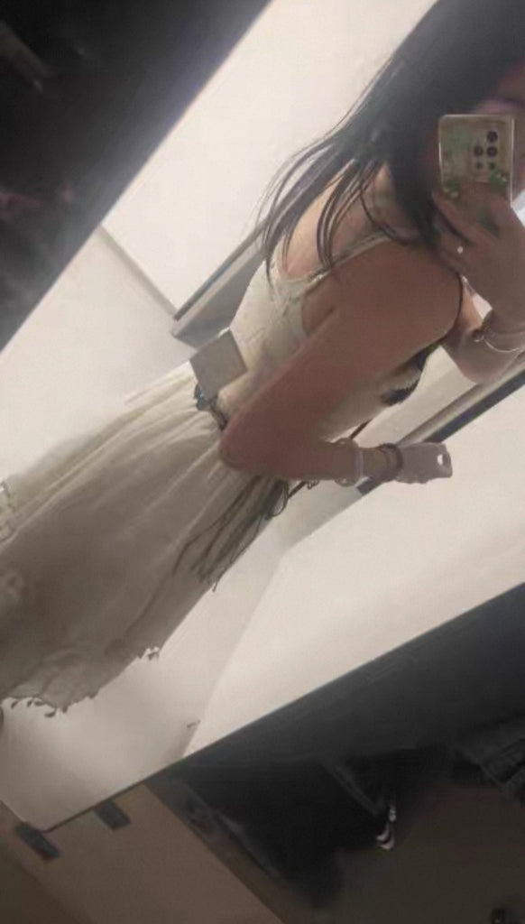 Embrace effortless boho chic with this white layered maxi dress, designed for free-spirited elegance. Featuring delicate spaghetti straps, a flattering V-neckline, and a flowing double-layered skirt, this dress moves beautifully with every step.