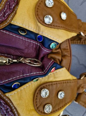 Make every outfit pop with this eye-catching patchwork handbag. Designed with vibrant stitched panels, textured faux leather, and charming metallic zipper pendants, it’s a statement accessory that doubles as a daily essential. Spacious, sturdy, and irresistibly unique.