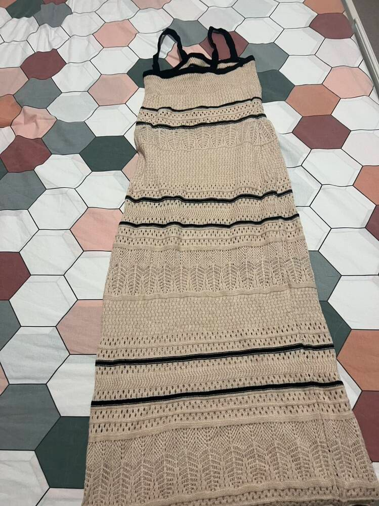 Timeless crochet meets a sleek silhouette. This body-hugging maxi dress is a summer essential elegant yet breathable, with its open-knit pattern and bold black accents. From daytime brunch to seaside nights, it delivers effortless charm with every step.