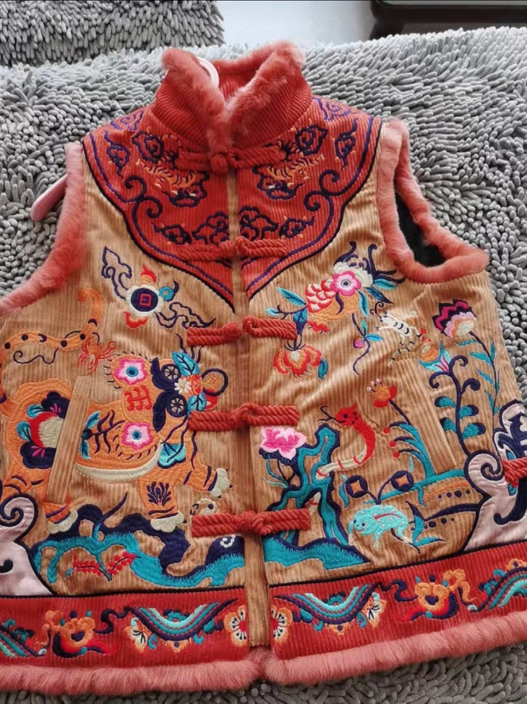 Embark on a journey through Eastern tradition with this meticulously crafted Embroidered Oriental Vest. This Tiger & Dragon Edition marries ancestral symbolism with contemporary style, presenting a wearable masterpiece that commands attention. Constructed from sumptuous premium fabric and lined with luxurious faux fur, the vest delivers both visual splendor and tactile comfort.
