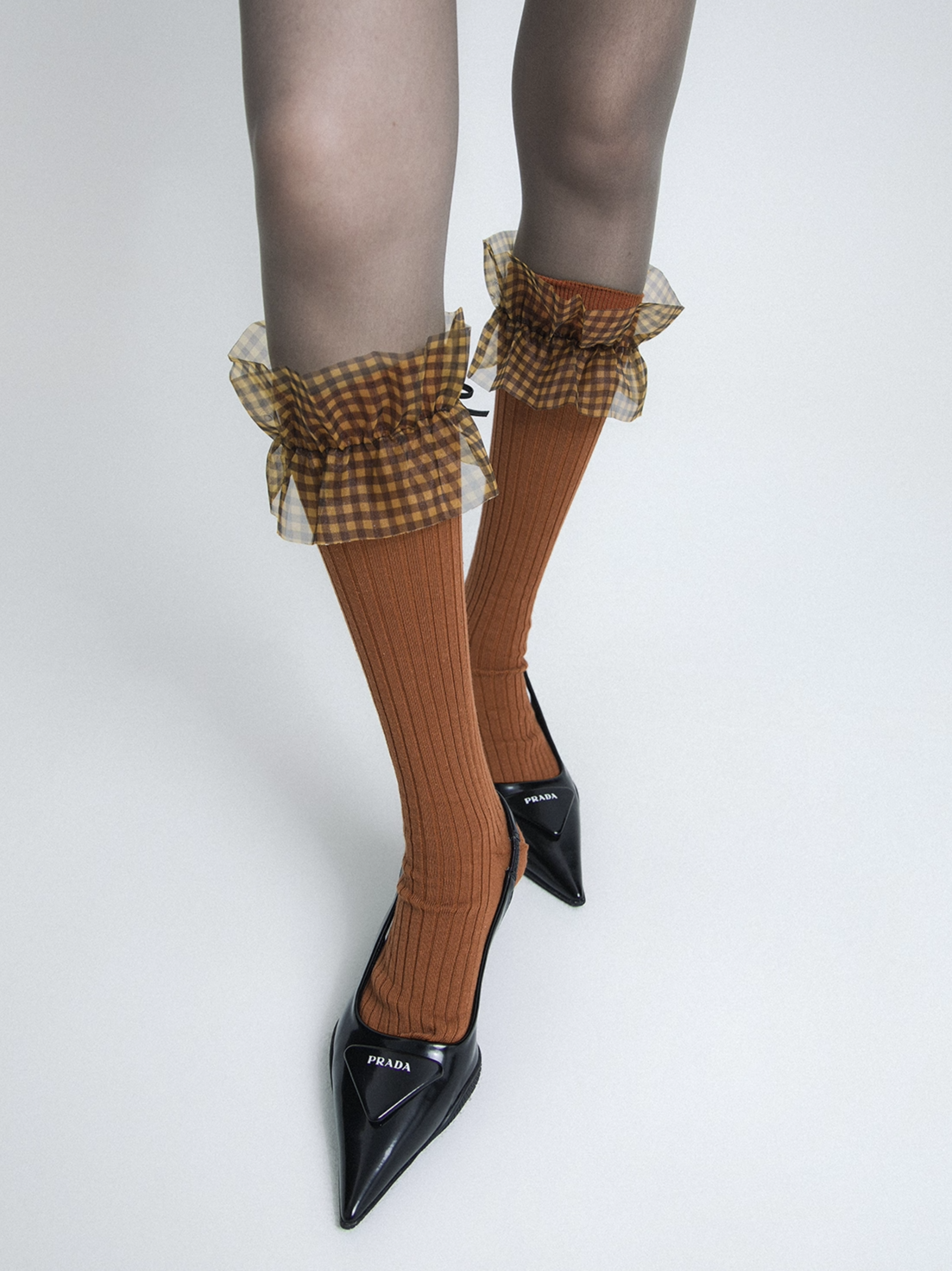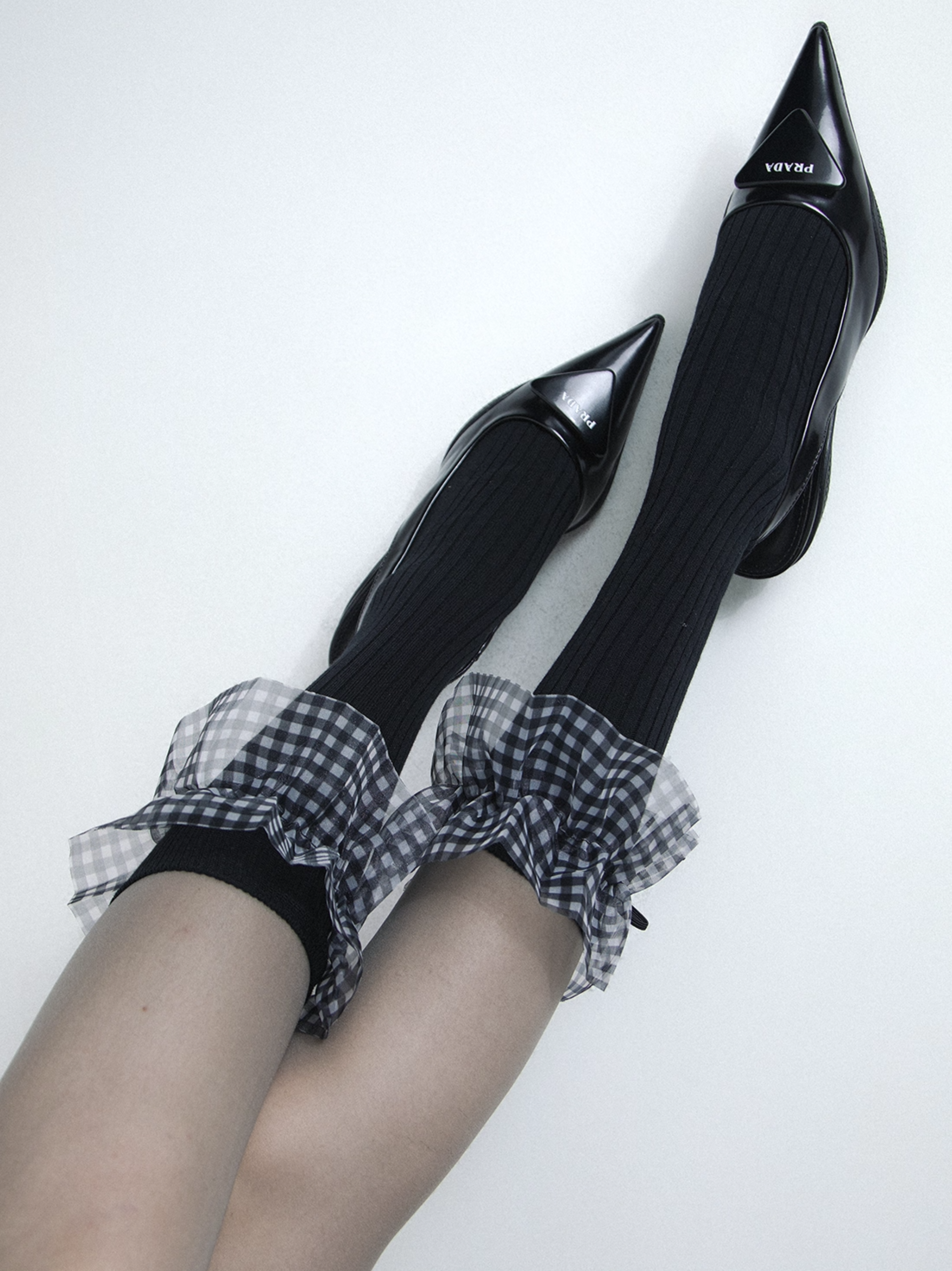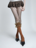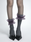 These translucent check mesh lace calf socks combine delicate lace details with a subtle check pattern, delivering a sophisticated yet playful look. Designed for women seeking a sweet and cool style, they add a charming touch to any outfit while offering breathability and comfort. Perfect for elevating your ensemble with a girly flair, these stockings blend elegance and casual ease seamlessly.