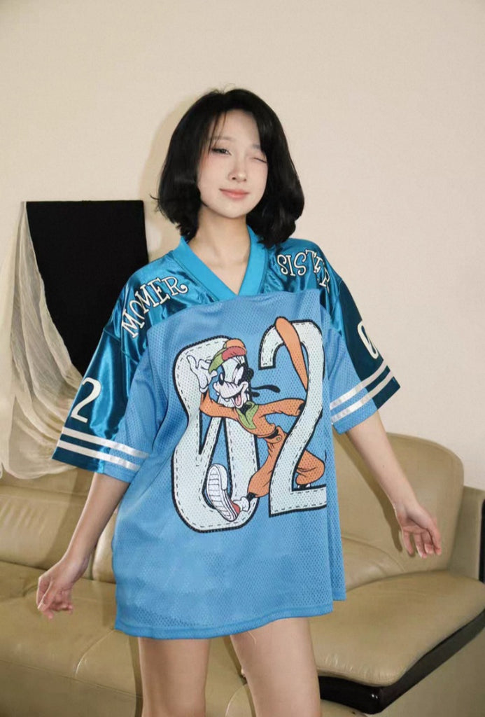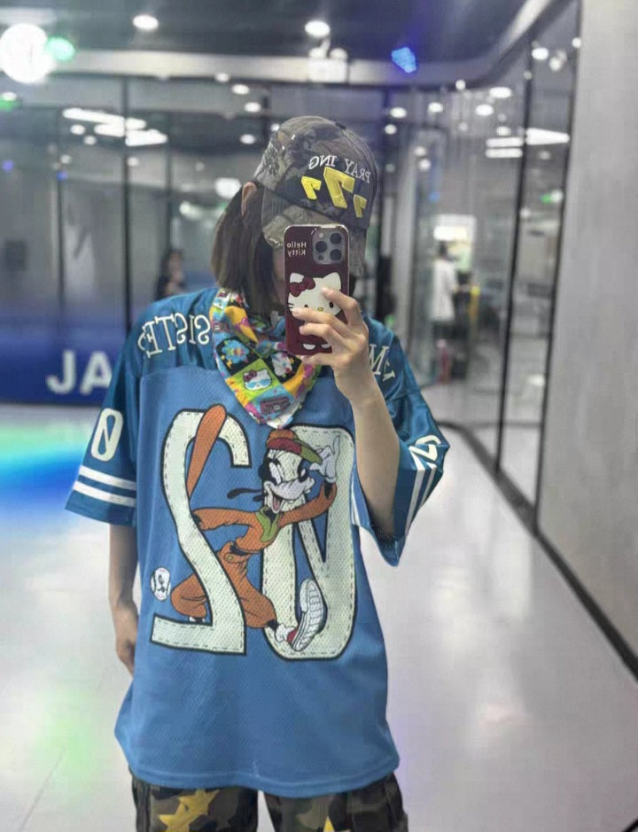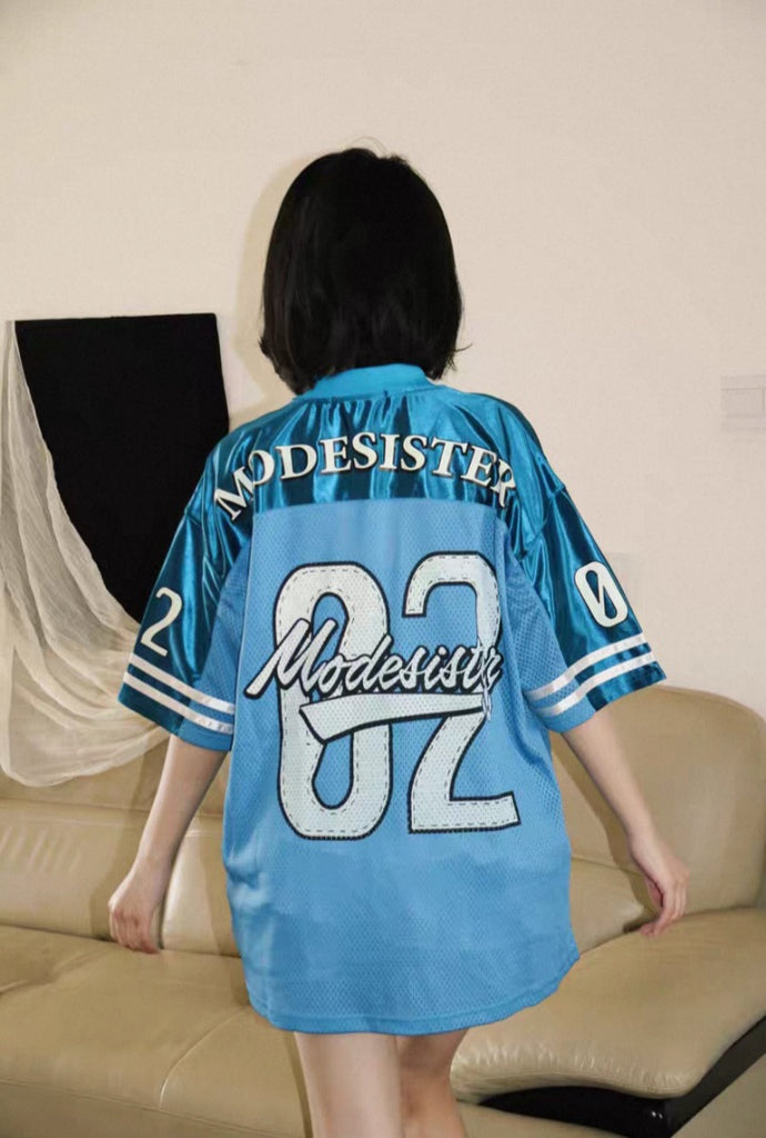 Bring back the golden age of streetwear with the Modesister 02 Oversized. Crafted in breathable blue mesh fabric, this jersey mixes retro sportswear aesthetics with playful cartoon-inspired graphics. The oversized fit ensures comfort and versatility, making it the perfect piece to style with jeans, shorts, or layered street looks.