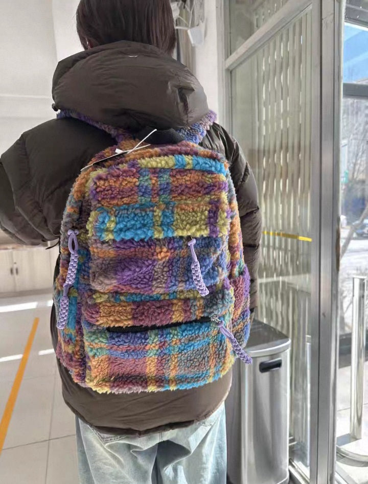 Add a touch of cozy streetwear to your look with this plaid sherpa backpack. Designed with ultra-soft fleece fabric, it offers a warm and stylish vibe while keeping your essentials secure. Featuring multiple zippered compartments and durable straps, it’s as practical as it is trendy.