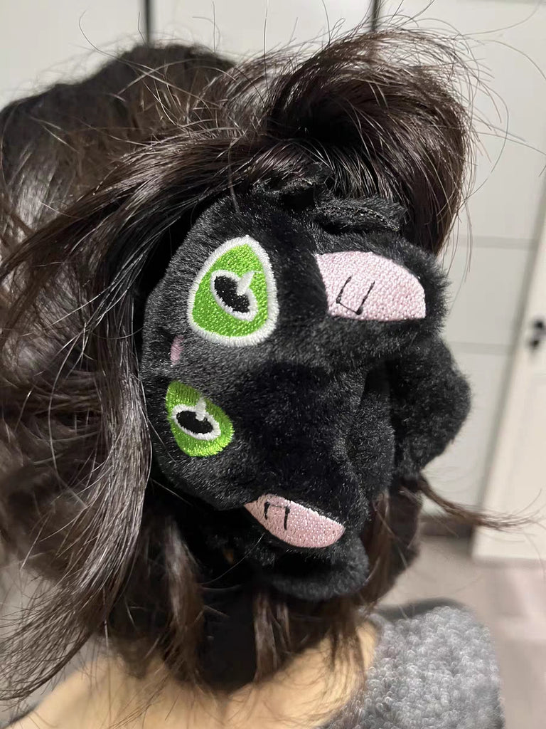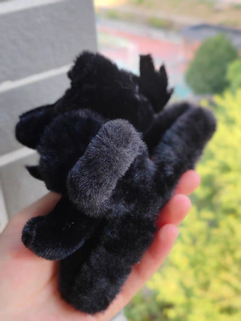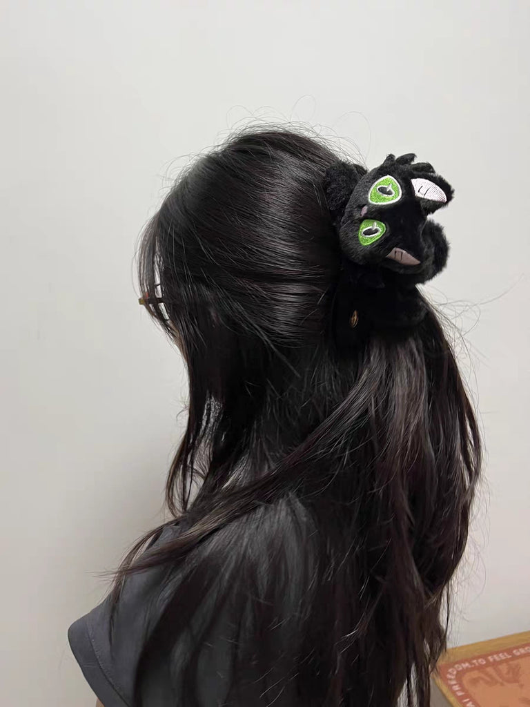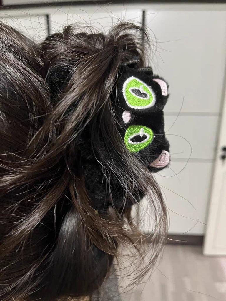 This black plush cat flap clip is a stylish and cozy accessory perfect for autumn and winter. Its large size and sturdy shark clip design secure your hair comfortably, making it ideal for updos and everyday wear. Combining playful charm with reliable hold, it enhances your look while keeping hair neatly in place during cooler seasons.