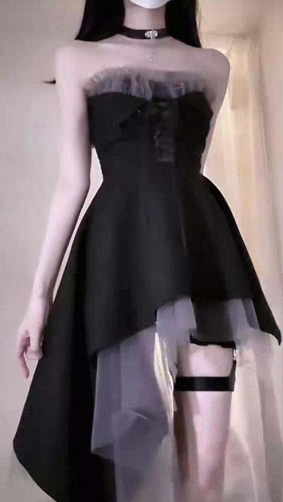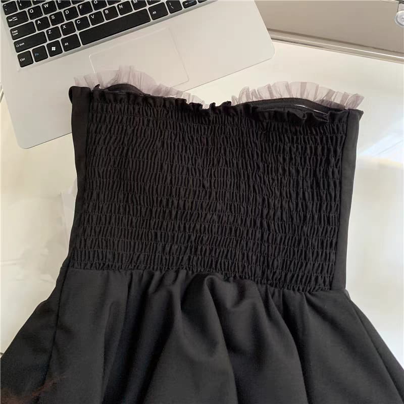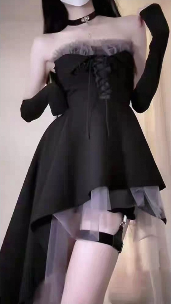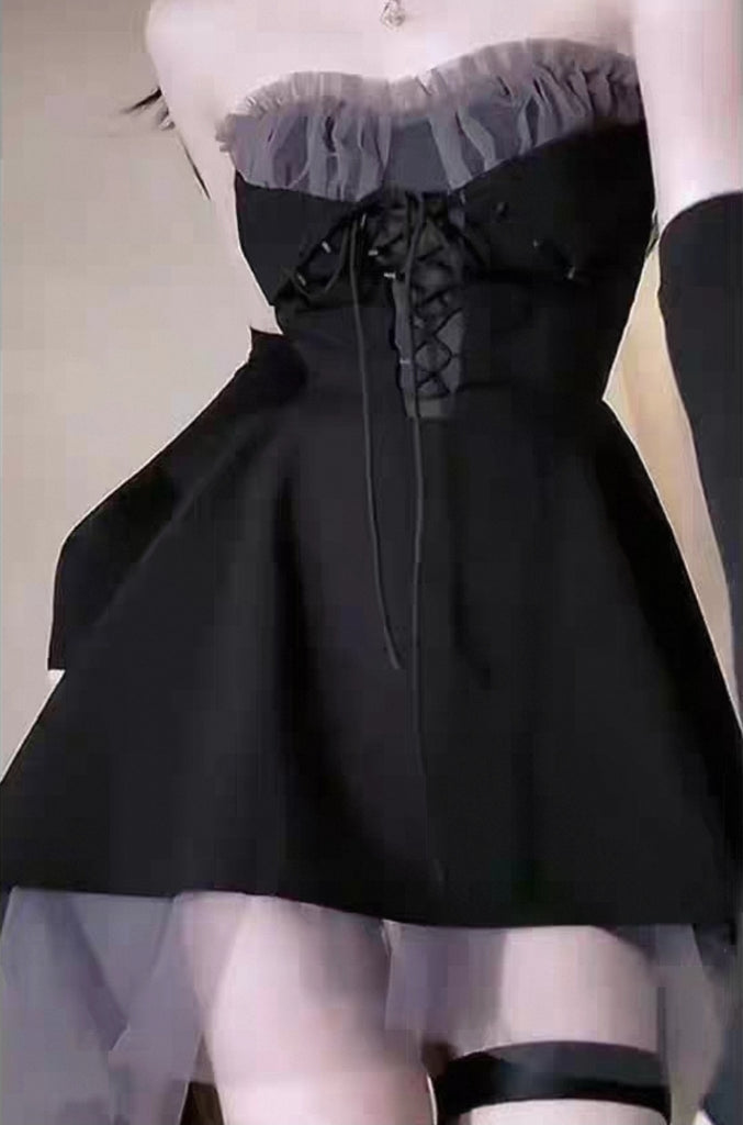 Embrace a bold fusion of dark romanticism and niche industrial style with this purple iris bandeau dress. Crafted from irregular gray-purple gauze mesh, the dress features a bandeau top paired with a skirt that blends edgy Halloween vibes with early autumn elegance. Designed for a confident woman, its unique textures and shades create a striking silhouette that stands out in any setting. Perfect for those who appreciate avant-garde fashion with a romantic twist.